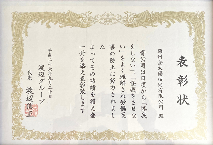錦州金太陽技術有限公司は、株式会社渡辺製作所によって2001年8月に中国に設立された板金の設計・加工、技術サービスを従事する子会社です。